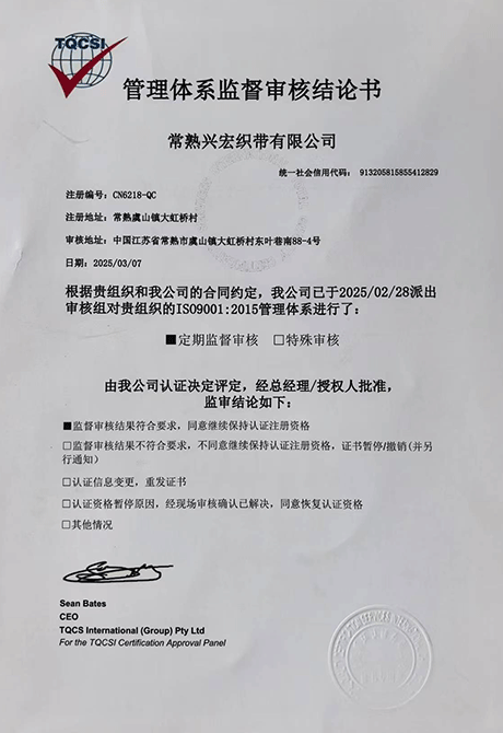 對工程負責 讓客戶滿意常熟興宏織帶有限公司